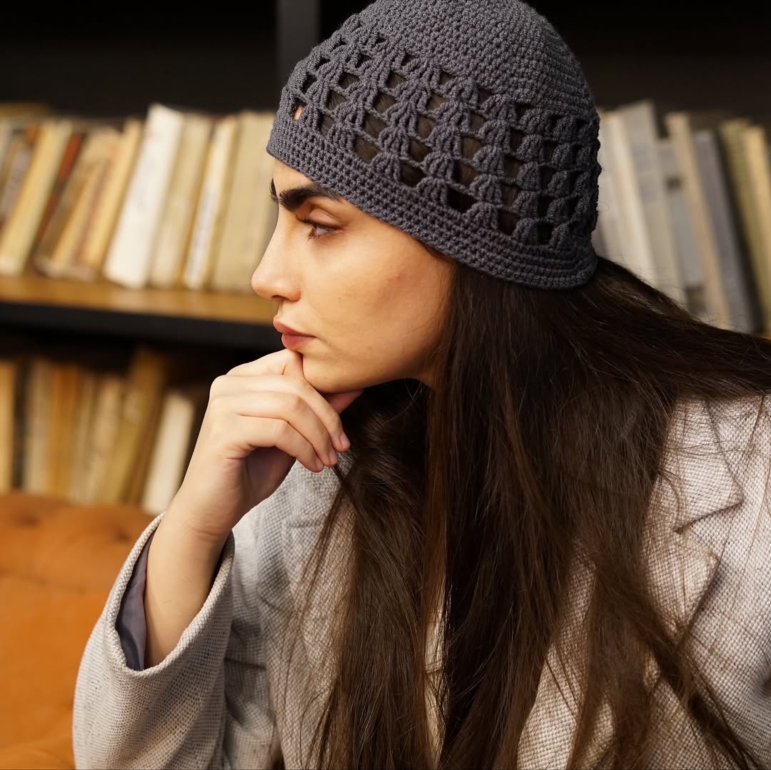 کلاه لئونی دست بافت جنس ترک رنگ طوسی کد ۱۱۱۱۰